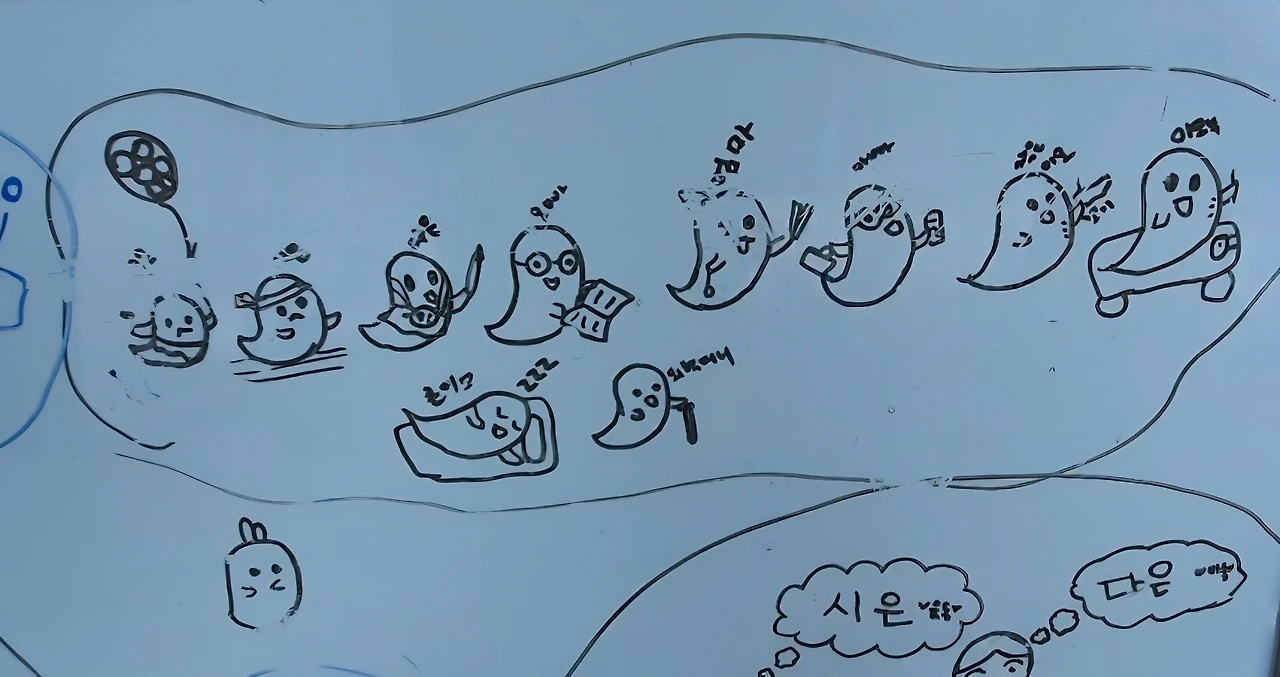 초5 조카가 가족 한 명 한 명의 특징을 형상화해서 귀신으로 표현한 것.