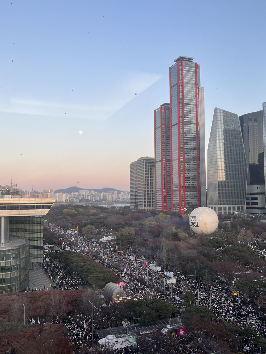 그들은 항상 더 큰 ‘나’를 위해, 더 나은 우리를 위해, 더 많은 사람들의 권리를 보장하기 위해 기꺼이 달려와 ‘모이는’ 사람들이다. 그런 그들이 국가 재난 상황에서 꺼내든 무기는 반짝이는 응원봉이었고, 소속 정당이나 지역구가 적힌 깃발 대신 생경한 ‘모임, 연구회, 협회, 연대’의 언어를 적은 깃발을 휘둘렀다. 귀엽고 평화로워 보이는 이름이라 얕보면 안 된다. 말랑한 방패로 무거운 혼돈을 밀어내는 치밀한 전략이다. 지적인 유머와 영리한 강인함을 자유롭게 구사하는 그들이 만든 모임들이 이번 집회의 색과 온도를 결정했다.