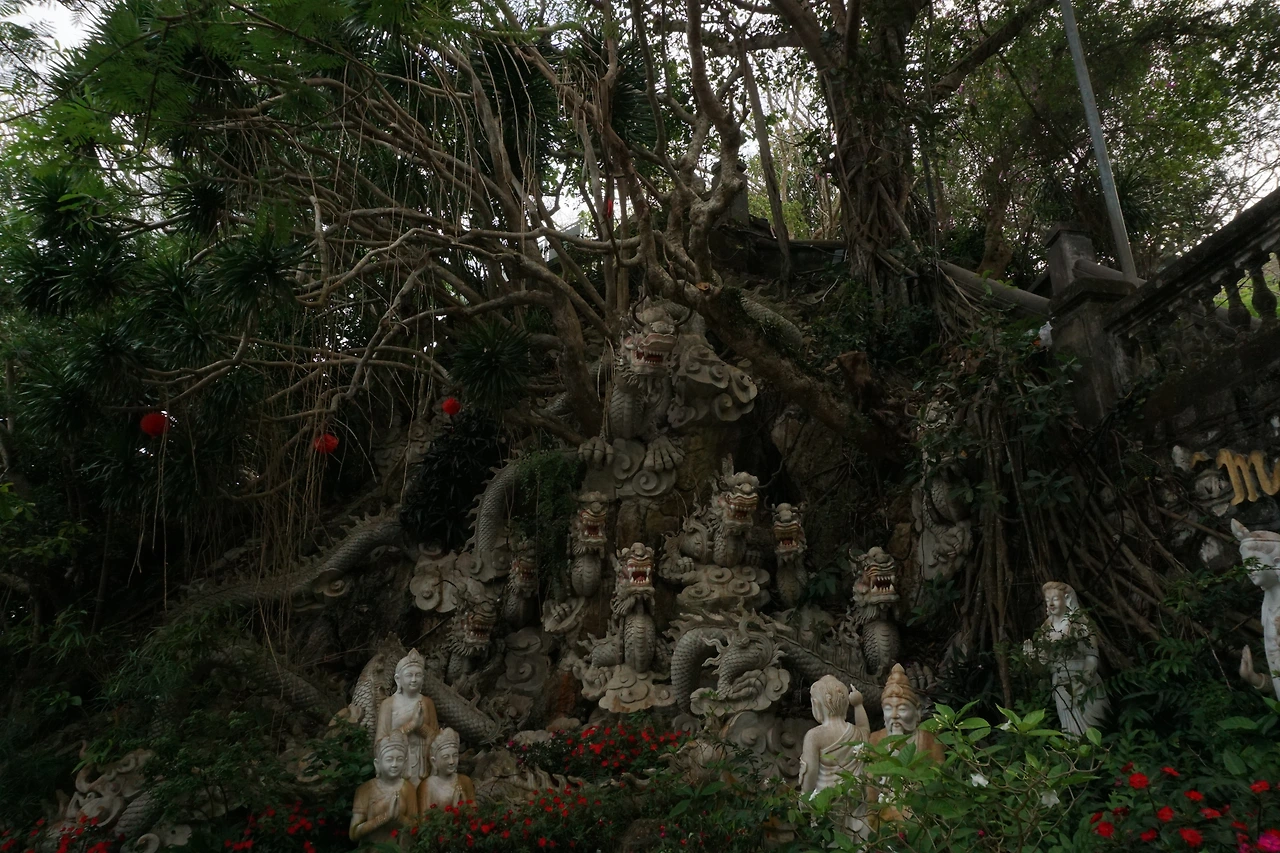 사람들이 몰려있는 곳을 보니 매표소 같은데 아마 엘리베이터를 타고 올라가는 거 같다. 줄을 서서 표를 끊으면 다시 줄을 서서 엘리베이터를 타고 올라간다. 그런데 과연 이게 엘리베이터를 탈 정도의 높이인가 싶다. 무엇보다 앞으로 마블 마운틴, 오행산이라는 이름의 유래가 된 대리석 산봉우리를 오르는 일은 이 엘리베이터와 전혀 무관한 험지를 타야 한다. 아마 이 엘리베이터는 연세가 많거나 몸이 불편한 분들을 위한 최소한의 관광 보장 같은 의미 정도?