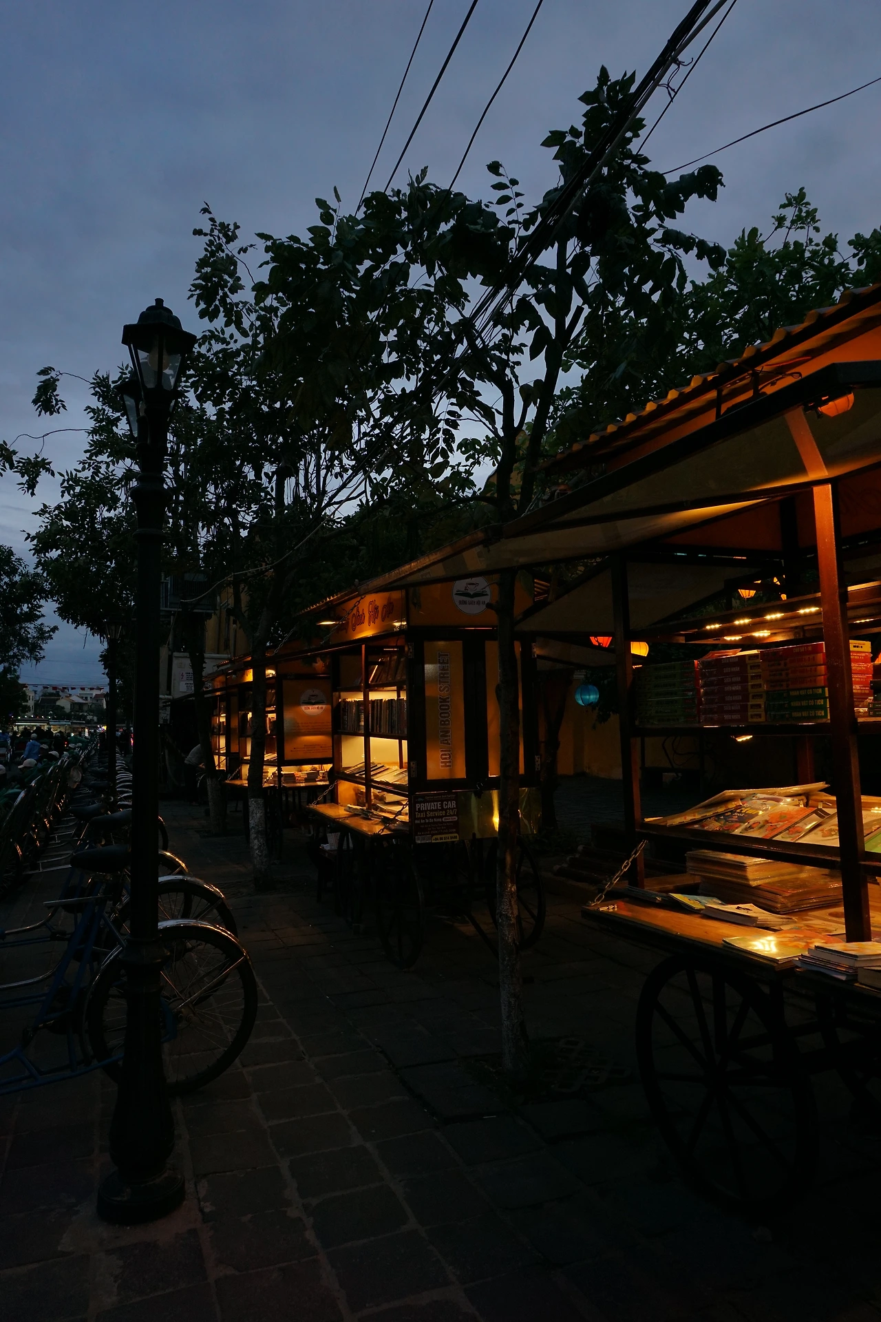 마냥 걸어 다니고 싶지만 사람이 너무 많아 분위기에 취해있기만은 힘들다. 올드쿼터 중심가를 지나 북쪽으로 계속 올라가면 다낭에서 추천받았던 가게가 있으니 가본다. 꽤 긴 시간을 걸어가 봤지만 아직 이른 시간이라 그런지 노점의 흔적만 있고 횅하다. 텅 빈 거리에서 서너 명이 장사 전에 앞서 요깃거리 정도 하는 모습만 보인다. 약간 억울하고 아쉽지만 왔던 길을 그대로 돌아간다.