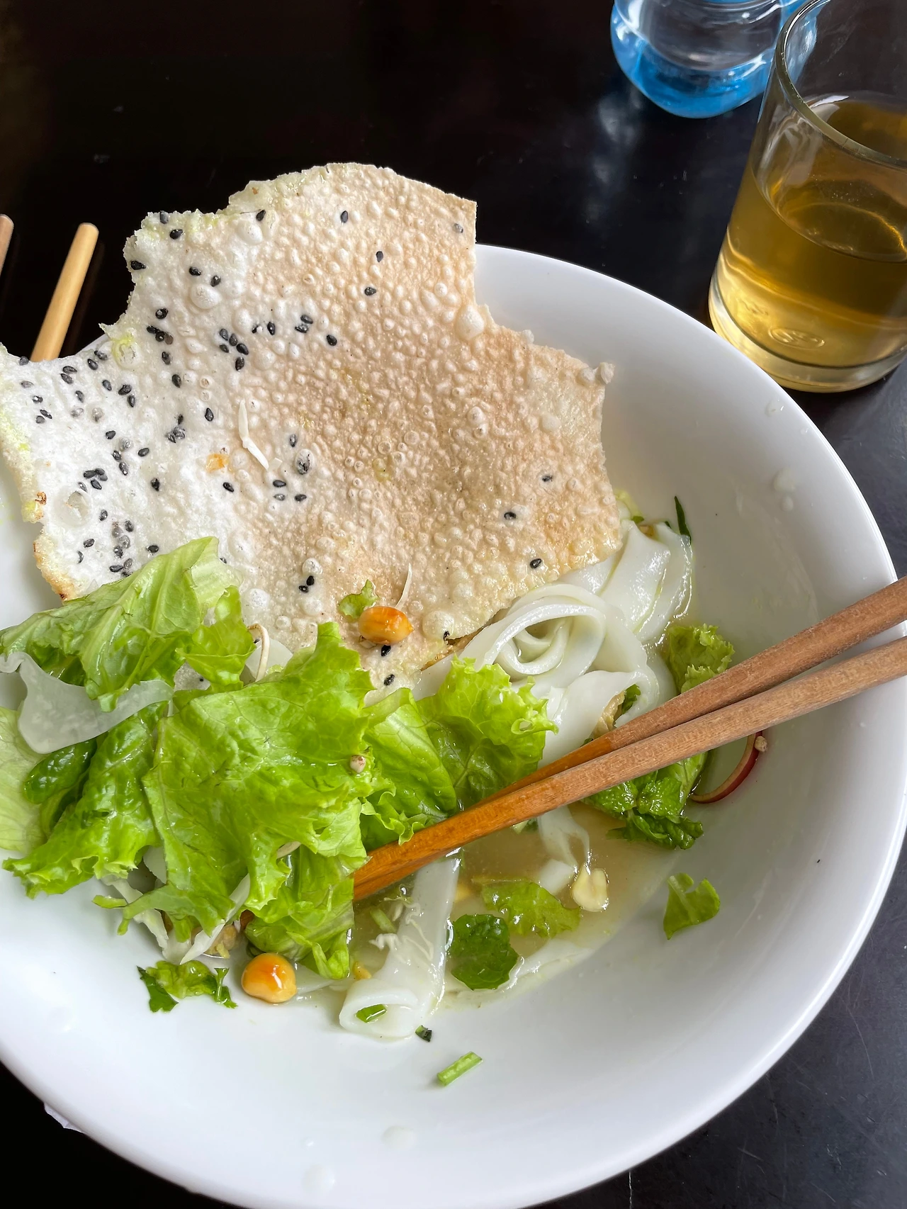 이번엔 올드타운 안에서 진짜 생생한 노점식사를 해본다. 다낭에서 먹었던 꼼가, 이 닭고기 밥도 원래 호이안 음식이다. 꼼가를 시키면 원래 이렇게 닭 가슴살을 찢어 올려준 게 전부라, 고기의 양이 조금 아쉽긴 하지만 저번처럼 뼈를 씹을 걱정은 없다. 순식간에 해치운다.