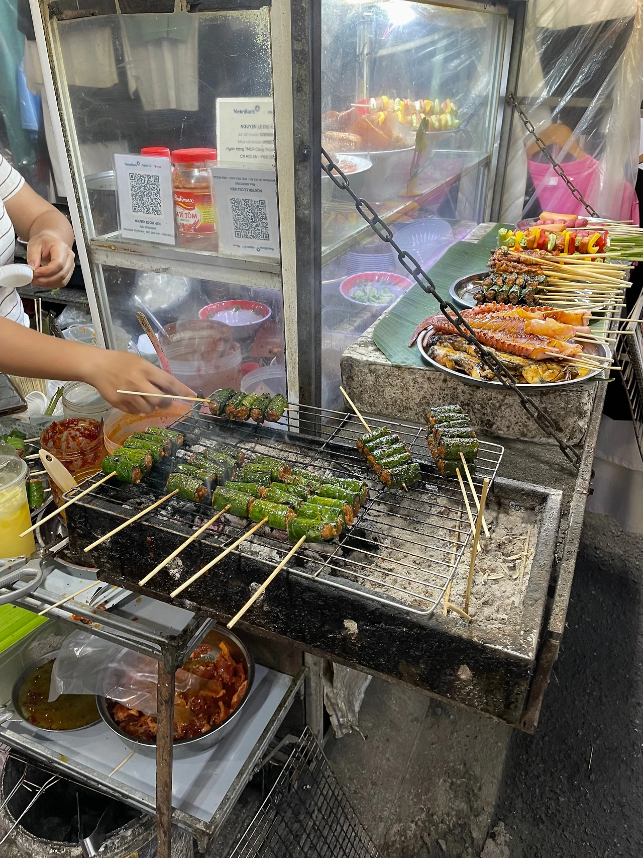 잎에 싼 소고기 꼬치가 노릇노릇 익어간다. 수많은 길거리 음식들이 나를 유혹하지만 이게 뭐랄까, 가장 베트남스럽게 느껴졌다. 하나를 주문한 뒤 재벌하는 동안 가게에 앉으러 들어간다.