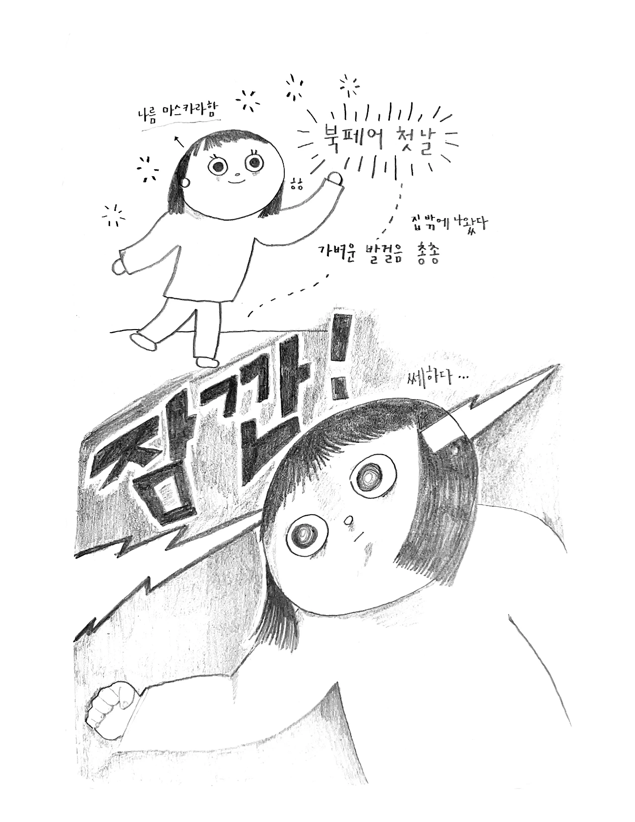 북페어에 필요한 책을 두고 밖에 나오는가 하면