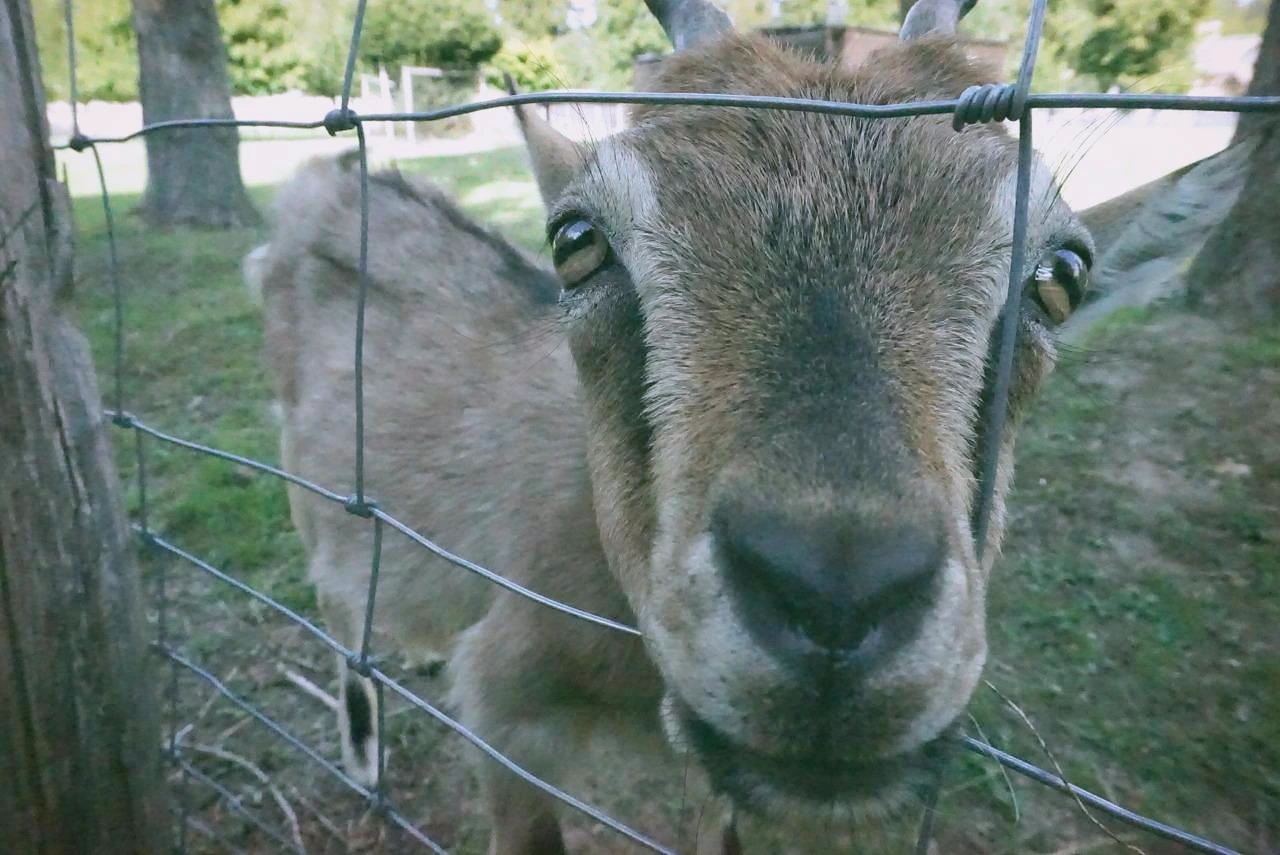 새끼 염소들이 귀여워서 한쪽으로 가서 염소를 불렀는데 염소 한 마리가 나한테 다가오는 것이다. 너무 귀여워서 풀을 뜯어서 한 움큼 주었다.
