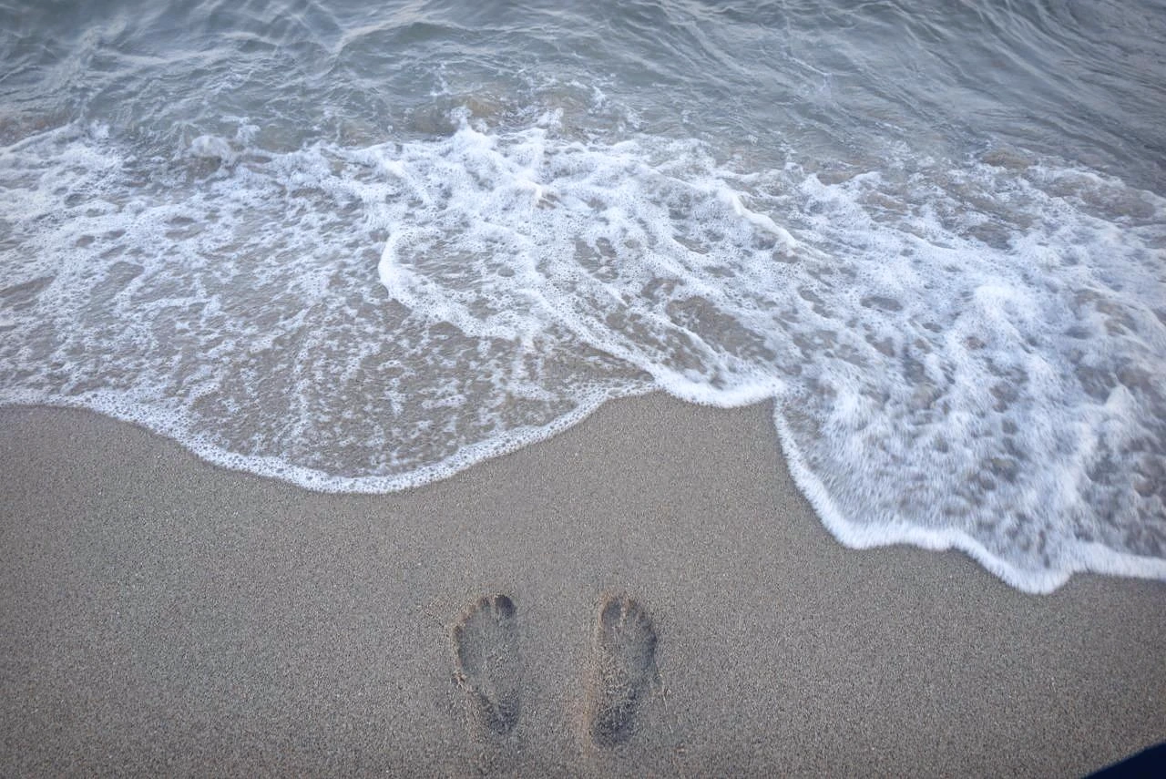 여행은 해변을 적시는 바닷물