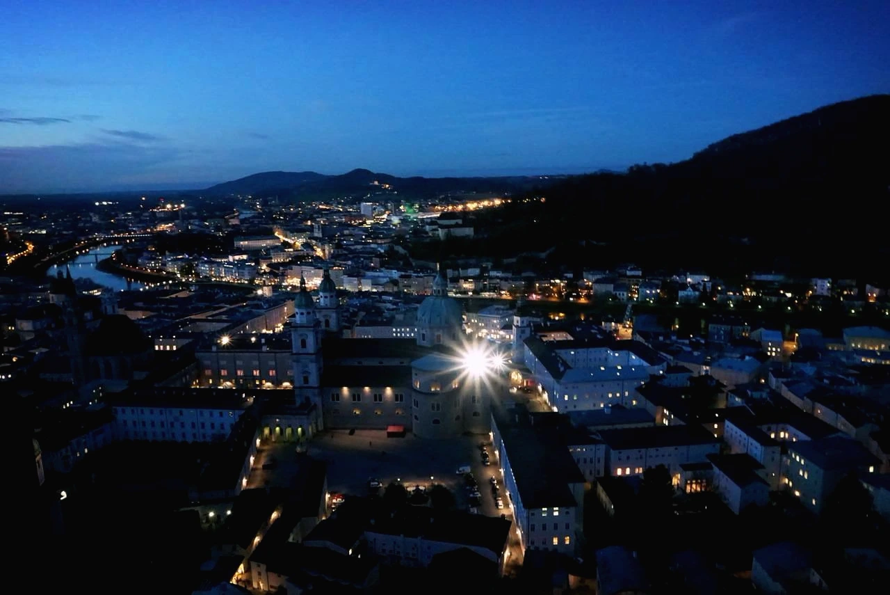 나는 잘츠부르크의 야경을 보기 위해 전망대 위에 자리를 잡았다. 잘츠부르크는 시간이 지남에 따라 도시의 멋을 더해간다. 저 멀리 보이는 산맥이 붉게 물들어갈수록 도시의 조명은 더욱더 환하게 빛나며 에메랄드 색의 쿠폴라도 검은 지붕들 사이에서 자신의 존재를 드러낸다. 도시가 모두 어둠에 잠기면 잘츠부르크는 자신의 색을 숨기고 주홍빛으로 반짝반짝 빛을 내기 시작한다.