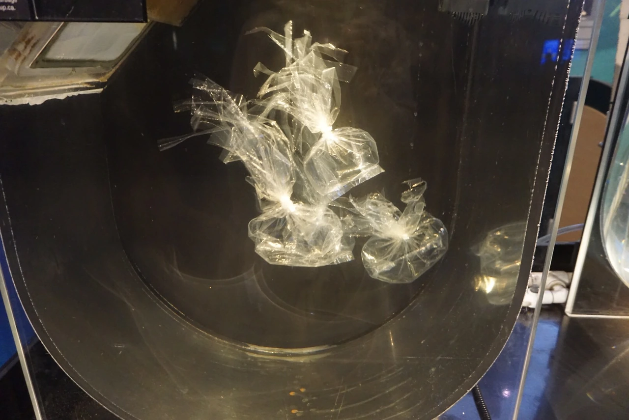 나는 처음에 단순히 해양 동물들만 구경하려고 했지만 우연히 해파리와 비닐을 비교한 수조 앞을 지나게 되었다. 해파리와 비닐의 움직임은 매우 흥미로웠다. 해파리가 몸을 수축, 이완하면서 헤엄치는 모습이 비닐이 바닷속에서 떠다니는 모습과 비슷했기 때문이었다. 해파리와 비닐이 비슷하게 보이기 때문에 이를 혼동한 바다생물들을 비닐을 섭취한다고 한다. 이렇게 섭취된 비닐은 몸안에서 분해되지 않고 쌓여 결국은 생존에도 큰 위협을 미치게 된다.
