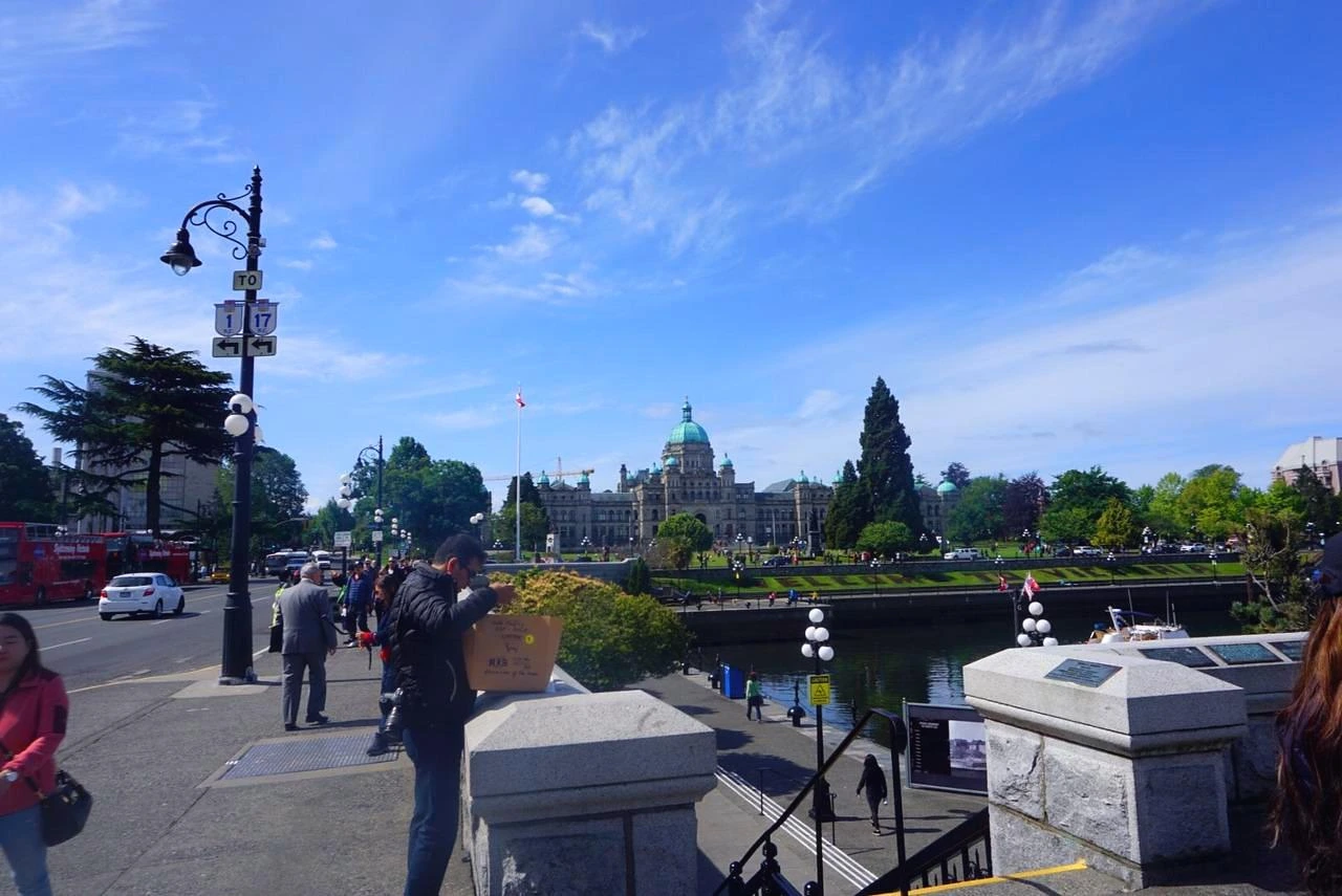 BC (브리티시 컬럼비아)의 주도인 빅토리아의 경우는 달랐다. 빅토리아는 현대 건축물이 많았던 밴쿠버와는 다른 느낌을 풍겼다. 일정한 높이의 벽돌 건축물들은 훨씬 더 유럽스러운 빅토리아만의 매력을 만들어냈다. 나는 빅토리아의 중심지인 BC주의사당 근처에 다다를수록 더욱더 유럽과 같은 느낌을 받았다. 유럽식 건축의 주의사당 앞으로 넓게 펼쳐진 잔디밭, 그 위에서 휴식을 취하고 있는 사람들, 그리고 그 너머로 펼쳐진 부둣가의 배들, 이 모든 것들이 유럽에서 보던 그대로였다.