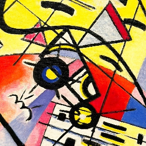 화가 이름을 보았다. 바실리 칸딘스키. 그러면 그렇지. 대상을 특정하기 어려운 추상적인 그림, 그 속에서 이유를 모르겠지만 하여튼 느껴지는 음율과 리듬, 이것은 칸딘스키라는 이름 아래에서 강력한 설득력을 얻는다.