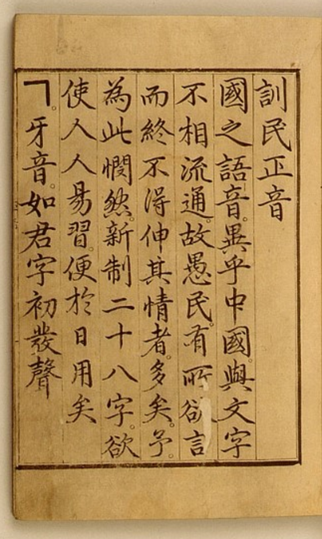 반면 한글은 동서양을 막론하고 상당히 이질적인 문자다. 그 태생은 붓에서 나왔으나 조형은 관념에 있기 때문이다. 다시 말해 붓으로 썼지만 고의적으로 건 우연히 건 붓의 특징을 배제했다. 세종대왕이 쓴 예의본에 나온 한글 자모를 보면 매우 각지고 딱딱한 모습을 하고 있다. 신기하게도 요즘 쓰는 고딕과 매우 흡사한 형태인데, 발음기관의 모습과 천지인에 대한 관념을 형상화하다 보니 그 모습이 마치 도형과 같다. 또한 나열형이 아닌 음소끼리의 조합이라는 특징이 이질감을 더한다. 해례나 이후에 편지로 쓰인 형태를 보면 철저히 붓에 편입된 형태를 띠긴 하지만, 그리 오래가지는 않았다.