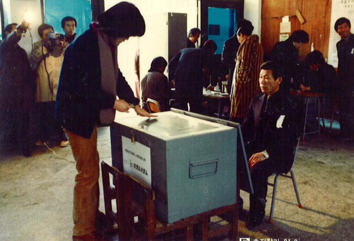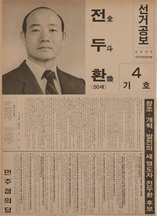 통일주체 국민회의 대의원 선거로 대통령이 된 전두환은 대통령 취임 직후인 10월 22일 제5차 국민투표를 통해 새로운 헌법안을 확정하여 변형된 유신체제를 도입합니다. 유신체제에 대한 국내외의 반발이 심해진 상황에서 그대로 유신체제를 지속할 수는 없었기에 약간의 변형을 꾀한 것입니다. 새로 마련된 헌법에 따르면 대통령 임기는 7년이고 5,000명 이상의 선거인단에 의한 간접선거였습니다. 명칭만 다를 뿐 유신체제하의 통대 선거와 동일한 것이었습니다. 또한 대통령에게 비상조치권, 국회해산권 등 막강한 권한을 부여했고, 유신정우회와 유사한 방식으로 전국구 국회의원 제도를 부활시켜 여기에 국회 의석의 3분의 1을 배정했습니다. 이 전국구 의석은 선거에서 승리한 제1당이 무조건 전국구 의석의 3분의 2를 가져가도록 했습니다. 지역구 국회의원 선거는 여전히 중선거구제였으므로 정부여당은 손쉽게 전체 국회 의석 중 3분의 2를 차지할 수 있었습니다.