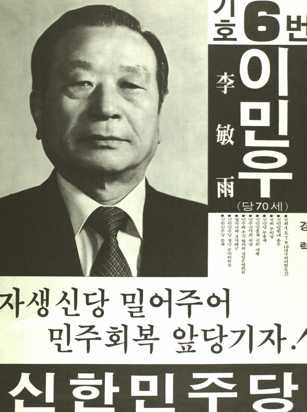 선거 후 민주한국당의 당선인이 대거 탈당하여 신한민주당에 입당함으로써 한때 제1야당이었던 민주한국당은 의원 3명만 남은 군소정당으로 몰락했고, 신한민주당은 국회 개원 전까지 의석수 103석을 보유한 사상 초유의 거대 야당이 되었습니다. 선거 이후에도 야권은 선거에서 나타난 국민적 여망을 담아 대통령 직선제 개헌을 계속 추진했고 신한민주당과 <민주화 추진협의회>는 대통령 직선제 개헌을 위한 천만인 서명운동을 전개하면서 6.10 민주화 항쟁의 불길을 높이 들었던 것입니다.