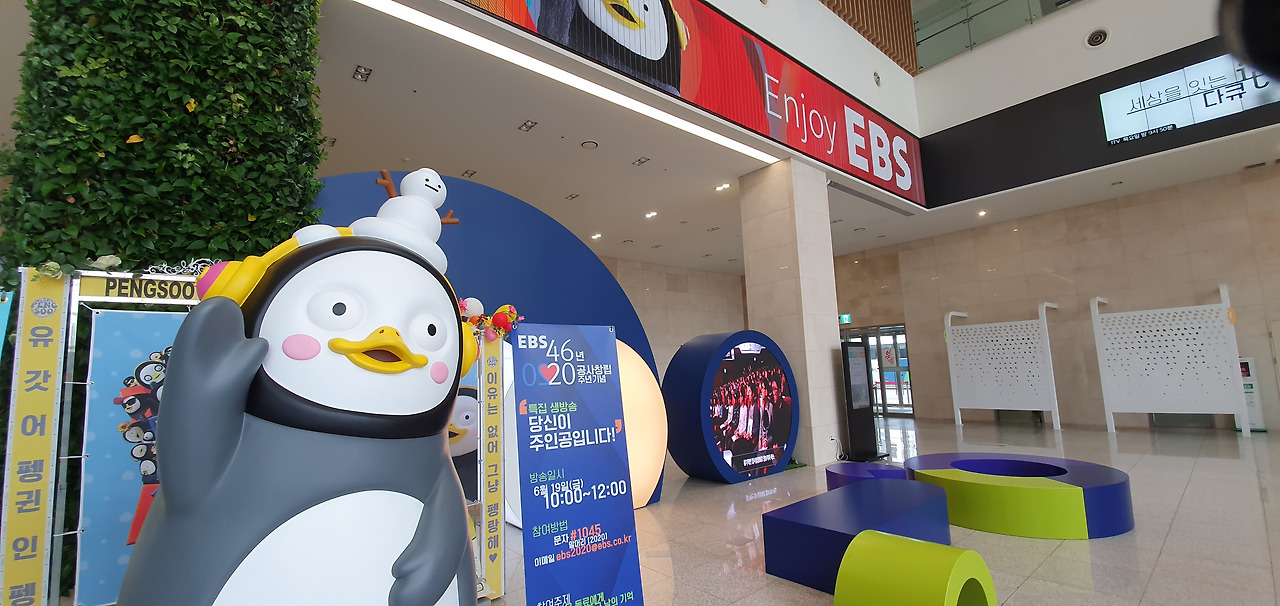 먼저 차를 주차하고 건물 정면으로 들어서면 ebs의 대표 히트작 펭수와 점박이가 반겨준다.