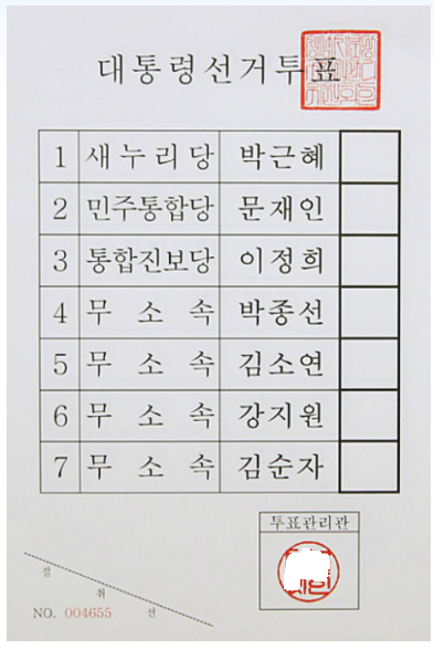 우리나라 투표용지는 독일의 투표용지와 비교하면 거의 완벽에 가깝습니다. 우리나라 투표용지는 일련번호에 의해 관리되고 선거관리위원회 청인과 투표관리관 직인이 찍혀 있어 위변조가 불가능합니다. 이에 비해 독일의 투표용지는 어떻습니까? 일련번호가 없는 것은 물론이고 그 어디에도 선거관리위원회의 청인이나 투표관리관의 직인은 보이지도 않습니다. 이런 허술하기 짝이 없는 투표용지에 연필로 기표를 하다니. 과연 선거부정 없는 공정하고 중립적인 선거관리가 가능할까요? 우리나라에서는 이런 거의 완벽에 가까운 투표용지에도 불구하고 항상 투표용지가 위조되었다느니 상이한 투표용지로 투표를 했다니 하는 의심과 불신이 끊이질 않는데 말입니다. 독일 시민들은 왜 불안해하지도 않고 부정선거를 걱정하지 않는 것일까요? 도무지 알수 없는 일입니다.