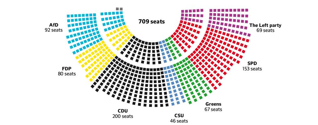 독일의 연방상원인 분데스라트 의원은 이 16개 주에서 인구비례에 따라 파견된 주정부의 대표자들로 구성되며, 독일의 연방하원(우리의 국회의원에 해당)하는 분데스탁 의원은 국민들의 직접 선거로 선출됩니다. 연방상원의 정수는 69명이며 연방하원의 정수는 598명입니다. 하지만 연방하원인 분데스탁의 실제 의원수는 연동형 비례 대표제의 의석 배분 방식에 따라 매번 달라지며 2017년 제19대 연방총선에서는 최종 709명이 되었습니다. 이글에서는 우리의 총선에 해당하는 연방하원 선거 즉, 분데스탁 선거를 중심으로 설명합니다.
