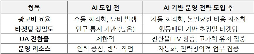 AI 기반 운영전략이 게임 마케팅의 비용 효율성을 높이는 방식은 다음과 같습니다.