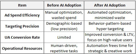 In the past, having a small ad budget meant fighting at a disadvantage. Now, with AI’s precise adjustments and real-time optimization, you can acquire more high-value users, reduce churn, and free marketers from repetitive work.