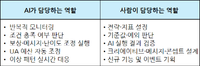 보상 지급, 난이도 조정안 생성, UA 예산 증감, 푸시 발송 같은 반복적 업무를 직접 수행합니다.