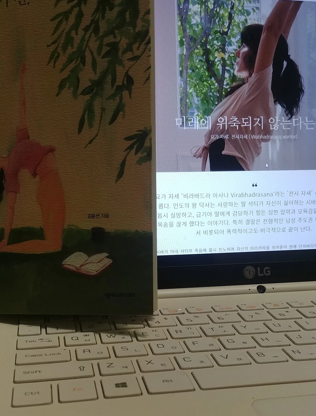 미국에서 요가 지도자 과정을 들을 때 이 자세에 관한 일화가 있다. 당시는 영어 수련 지도 실습에 스트레스를 받던 때였다. 몸의 움직임이 마음에 어떻게 연결되는지, 그런 연결과 흐름을 이끌어내려면 섬세한 표현들을 써야 했는데, 나의 영어 실력으로는 역부족이었다. 지금 같으면 한국말로 자신 있게 수련 지도를 했을 텐데, 그때는 왜 그 생각을 하지 못한 걸까. 나는 때때로 의기소침해져서 왜 여기까지 와서 언어의 스트레스를 받으며 요가 지도자 과정을 시작했는지 후회를 하곤 했다.