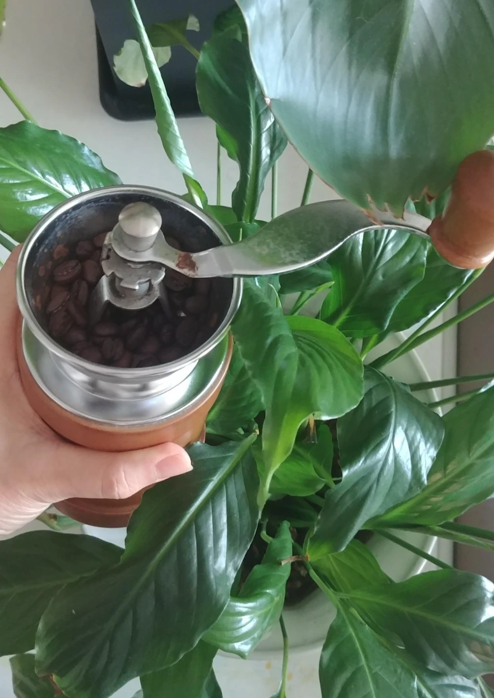 오늘은 오랜만에 아날로그적으로 핸드밀로 커피콩을 갈아서 커피 한 잔을 내렸다.