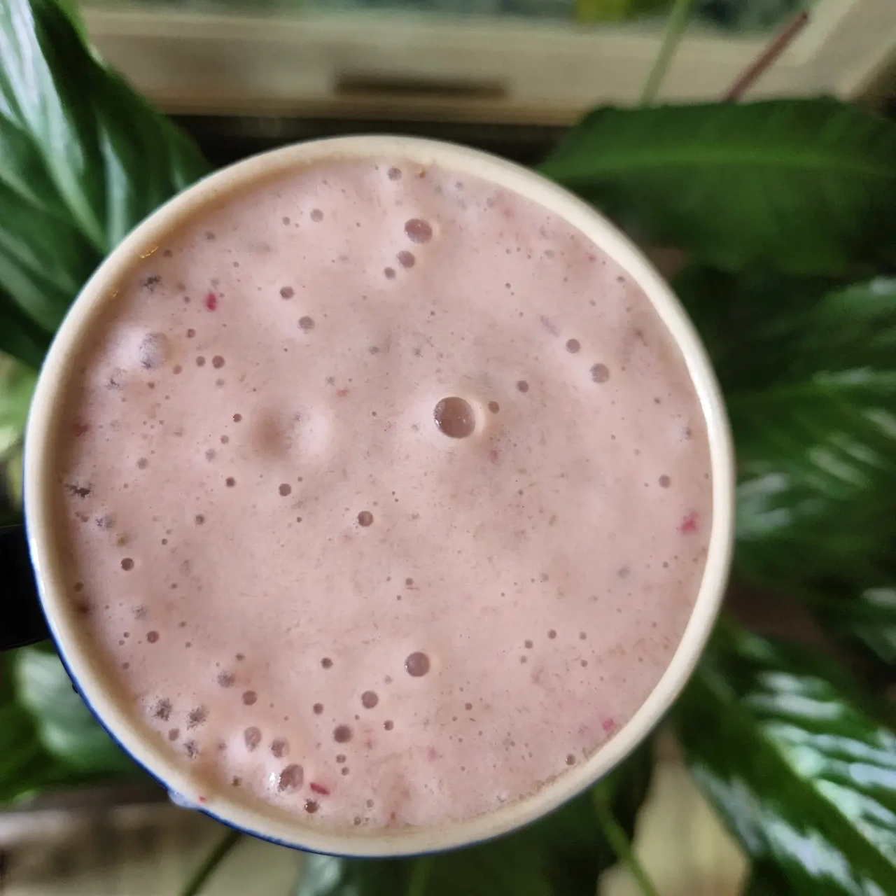 '사랑과 우정'의 한 때를 떠올리며 만들어 마신 오늘의 비건 푸드는 딸기와 바나나와 두유를 함께 갈아먹는 비건 스무디