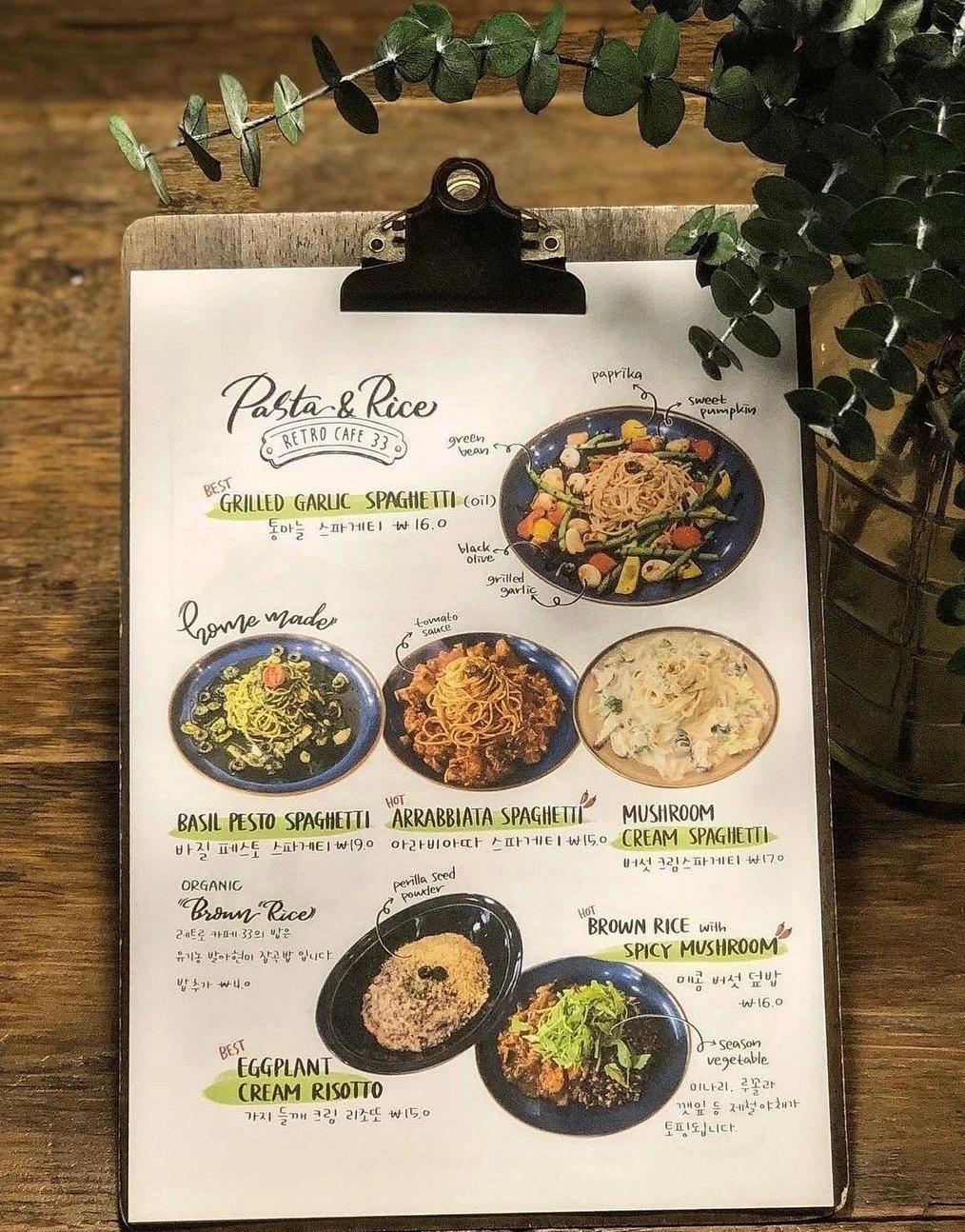 이름만큼이나 'Retro 레트로'스럽다. 또한 레트로 33은 '용기'를 준비해서 음식을 주문 해갈 경우 가격 할인을 해주는데 이 또한 플라스틱 사용을 줄이려는 이 카페의 가치관과 지향을 잘 보여주는 실천이다.