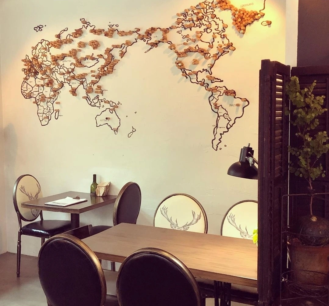 식당 벽면에 직접 그린 걸로 보이는 세계지도가 있는데 지도 속 군데군데에 코르크병 마개 가 붙어있다. 와인을 마신 손님들이 본인들이 좋아하는 세계의 곳곳을 표시해놓은 거라는 설명이었다. '저건 뭐지?' 하다가 밥 먹느라 잊고 있었는데, 마침 옆 테이블 손님이 물어보는 걸 듣고 알게 된 사실이다. 다음 방문 때는 좋았던 여행지 몇 곳을 표시해놓고 싶다는 생각과 함께 조만간 저 세계 전도 위를 코르크로 빽빽이 채워지는 날이 올 것만 같다.