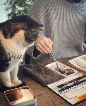 33 아뜰리에 수채화 수업시간에 참여 중인 고양이