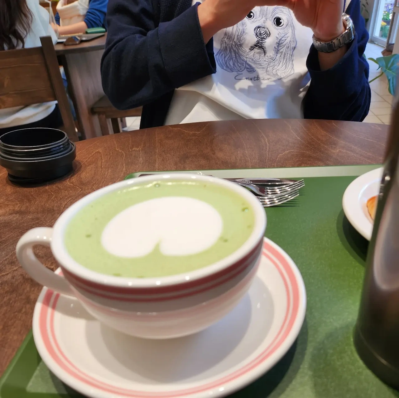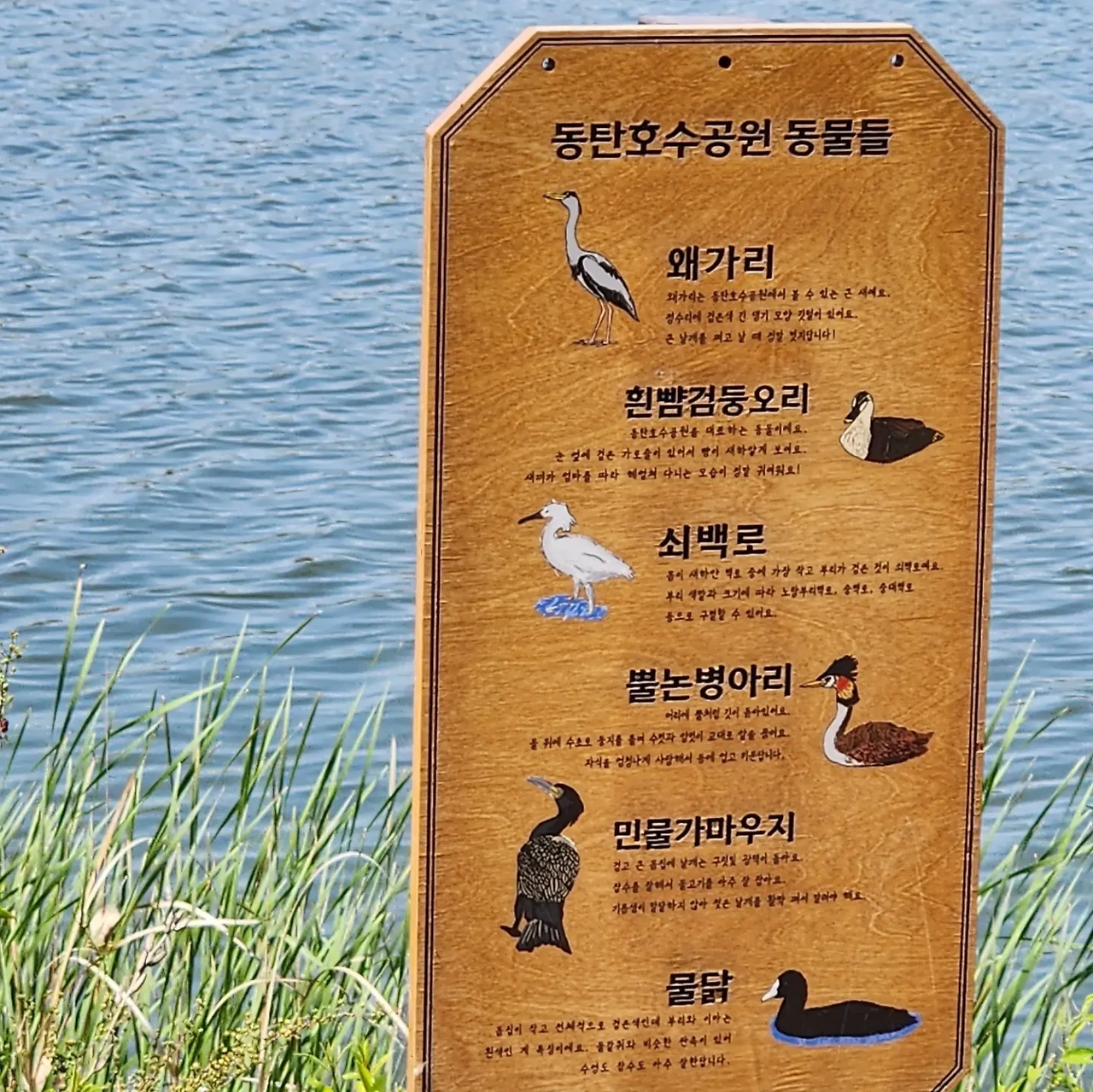 왼쪽 : 오트유 베이스 유기농 말차 라떼, 오른쪽 : 카페 옆 호수공원에 사는 동물 주민들의 이름이 정겹다
