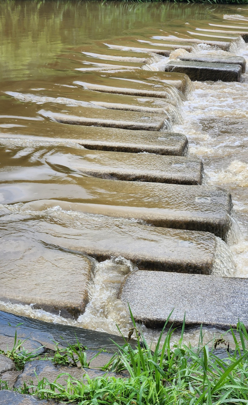 물이 넘친 징검다리