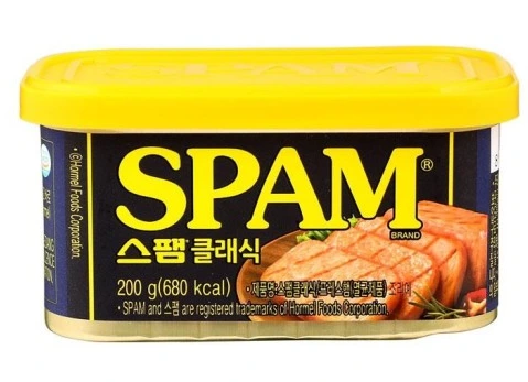 영어 단어'스팸 Spam'은 '쓰레기'라는 뜻도 가지고 있다. 우리가 정기적으로 삭제하는'스팸 메일'의 '스팸'의 의미와도 통하는 바가 있음을 알 수 있다. 2차 세계대전중에 병사들에게 공급되기 시작하며 호황을 누렸다는 스팸은 순 살코기가 아닌 다량의 돼지 지방을 함께 갈아서 만들었다고 한다. 전쟁 후에는 다량의 지방과 다량의 소금이 첨가되어 건강에 좋지 않은 식품이라는 인식도 퍼져가기 시작했다.