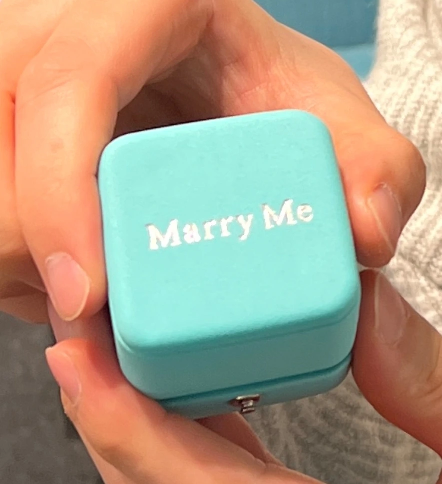 제목에서 밝혔듯 남자친구는 1순위 다이아몬드 반지를 내 손에 끼어주었고, 마침 티파니에서 주는 Marry Me가 적힌 민트색 박스를 열며 한 번 더 '나랑 결혼해 줄래'를 물었다.