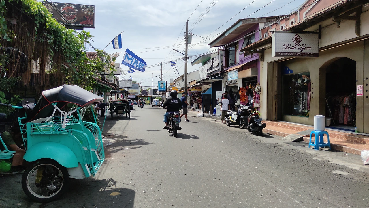 그러나 마음이 불편한 것은 어쩔 수가 없으니 자전거가 아닌 오토바이로 운행하는 베짝을 종종 타게 된다. 물론 이런 경우에는 자전거로 운행하는 분들의 삶은 더 팍팍해질 수도 있을 노릇이다. 베짝을 운행하는 분들은 그 지역의 가이드 역할을 하기도 한다. 아마도 바틱 상점, 기념품 상점, 특산품 상점 등에 손님을 데려다주면 커미션을 받는 것 같다. 손님을 태우면 목적지까지 빨리 데려다주거나 관광지 한 바퀴를 돌려고 하지 않는다. 계속해서 어디로 데려다주겠다고 한다. 시간이 많이 걸리는 걸 전혀 개의치 않고 한 군데라도 더 가려고 한다. 경우에 따라 요금을 거의 안 받겠다고 말하기도 한다. 사실 그렇게 가는 곳도 바가지를 씌우거나 비싼 물품들을 파는 곳이 아닌 그저 평범한 상점들이다. 그러니 그렇게 관광을 하는 것도 재미있는 팁이 될 것이다. 우리 가족은 이미 이 도시에 살고 있기 때문에 특별히 상점에 갈 일이 없어서 처음부터 코스와 요금을 정해놓고 움직인다.