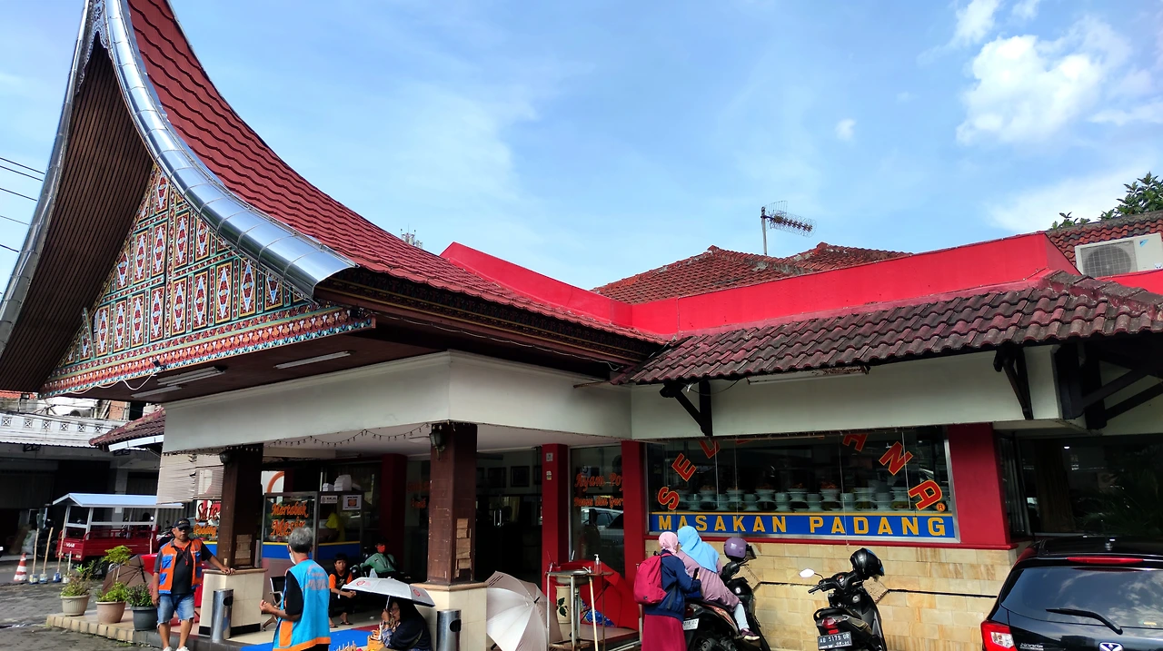 처음 서빙된 요리들 중에 먹지 않을 몇 접시를 옆으로 빼놓고 음료를 주문했다. 이후로 몇 가지 음식이 더 서빙되어 나왔고 른당과 삼발 히저우(소스종류)는 따로 주문했다. 파파야 잎을 소스에 찍어 먹는 느낌은 간을 하지 않은 나물을 고추장에 찍어 먹는 느낌과 비슷했고 사랑니로 인한 통증을 느끼고 있었기 때문에 약간은 질긴 른당을 먹는 것이 쉽지 않았다. 왜 옆 테이블에 있는 음식이 우리 테이블엔 없지 하는 의구심을 가지고 아내와 그 이유에 대한 추리를 하기도 했다. 어쨌든 여러 가지 빠당음식을 배부르게 먹고 나니 종업원이 계산을 하기 위해 테이블로 왔다. 요리의 가짓수가 많고 양념을 비슷하게 쓰다 보니 종업원이 남은 양념을 보고 요리를 식별하는 데 시간이 걸렸다. 이번에 알게 된 사실은 한 접시에 담긴 두 덩어리의 른당 중 한 덩어리만 먹게 된다면 값은 절반만 지불하면 된다는 것이었다. 한국 음식 같은 경우 남은 음식의 재활용도 어렵고 접시마다 돈을 지불하지 않기 때문에 다소 생경한 광경이겠지만 빠당 음식은 접시마다 따로 값을 지불해야 하기도 하고 나시(밥)가 있는 접시로 음식들을 옮긴 다음 손으로 비벼서 식사를 하는 것이 일반적인 식사습관이다 보니 아마도 남긴 음식은 다른 테이블로 서빙될 것이다. 결제를 해 보니 둘이 먹은 식대가 한화로 14,000원 정도 나왔다. 그중 가장 큰 비중을 차지했던 음식은 른당이었는데 두 덩어리가 담긴 한 접시에 한화 5,000원이 조금 넘었다. 사실 단순히 끼니를 때우기 위해서는, 길에서 파는 봉지 도시락을 천 원 이하로도 살 수 있기 때문에 적게 나온 금액은 아니지만 이곳에서 꽤나 유명한 식당에서 맛있게, 그리고 편하게 먹은 음식값이라고 생각하면 만족스럽다고 할 수 있다.