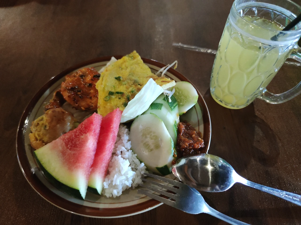 몇 가지 온라인으로 처리할 일들을 마치곤 동영상 강의 하나를 틀어놓고 잠이 들었다. 3시간을 갔는데 겨우 고속도로 입구다. 멀미약이 독한 건지 다시 잠이 들었다. 차장 한분이 나를 흔들어 깨운다. 버스가 이미 식당에 도착했다. 프라스마난(Prasmanan, 간단한 뷔페식) 식당이고 버스요금에 식대가 포함되어 있다. 식사를 마치고 화장실에 갔는데 지갑에 잔돈이 없다. 로컬 화장실엔 보통 한화 200원 정도의 요금을 내곤 하는데 미처 준비가 안 된 것이다. 다행히 식당직원은 돈을 내지 않아도 무방한다고 나를 안심시켜 주었다. 버스에도 화장실칸이 있었지만 사용하기가 불편한 상황이었다.