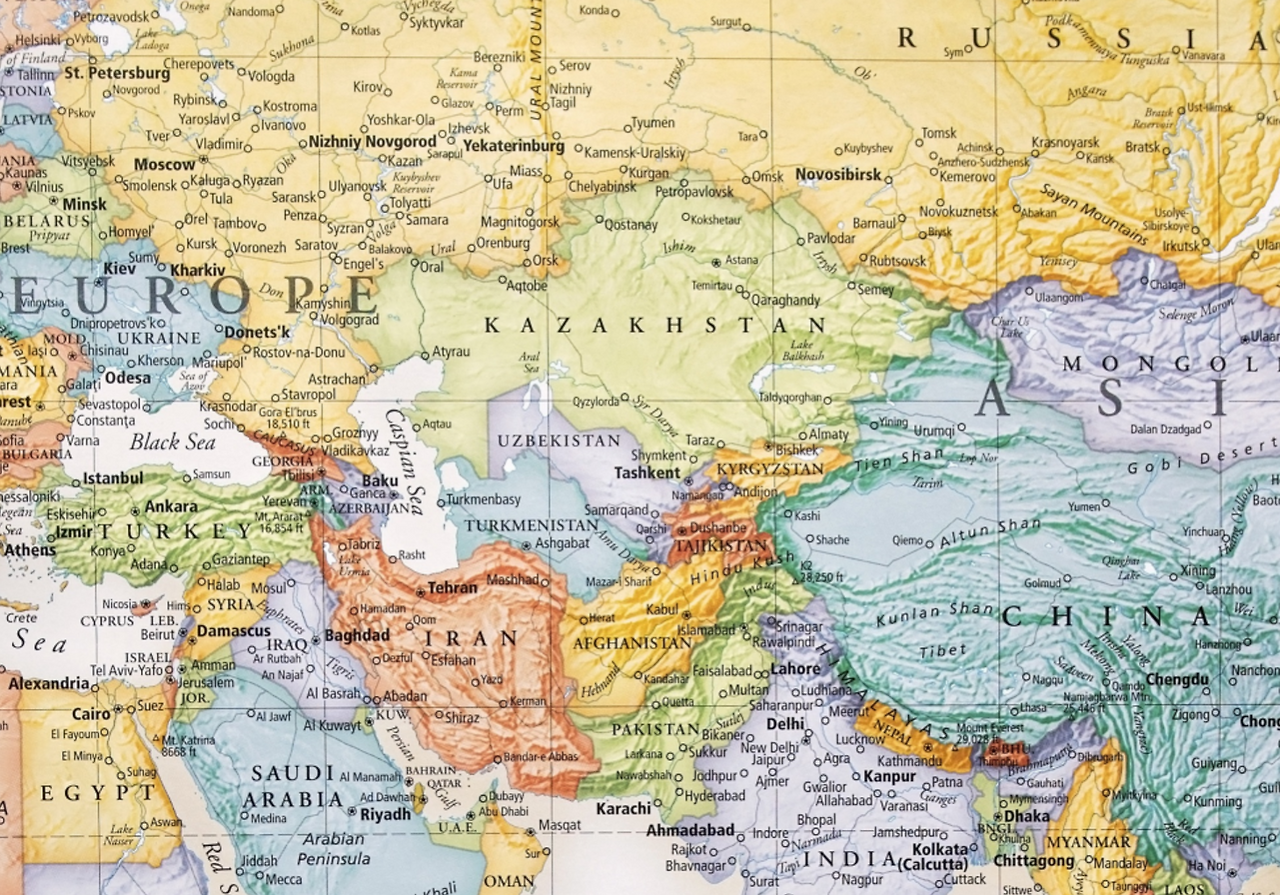 카자흐스탄, 아시아와 유럽을 잇는 브리지(Bridge)* 카자흐스탄공화국은 중국, 러시아, 투르크메니스탄, 우즈베키스탄, 키르기스스탄, 그리고 서쪽으로 카스피해를 국경으로 한다. 주변 나라들과 비교해보면 얼마나 거대한 영토를 가진 나라인지 실감된다.
