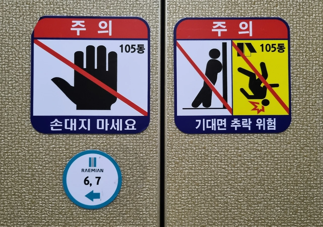 ‘손대지 마세요’, ‘기대면 추락 위험’ 같은 경고 스티커에