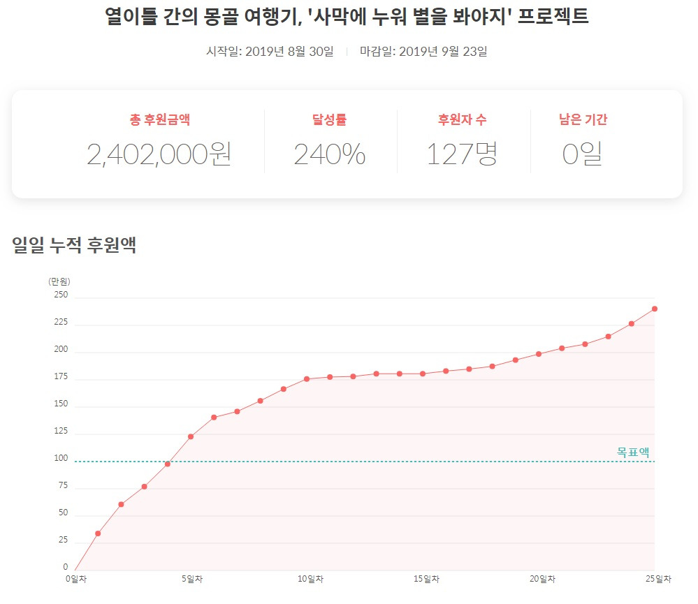 열이틀간의 몽골 여행기, '사막에 누워 별을 봐야지 펀딩 링크