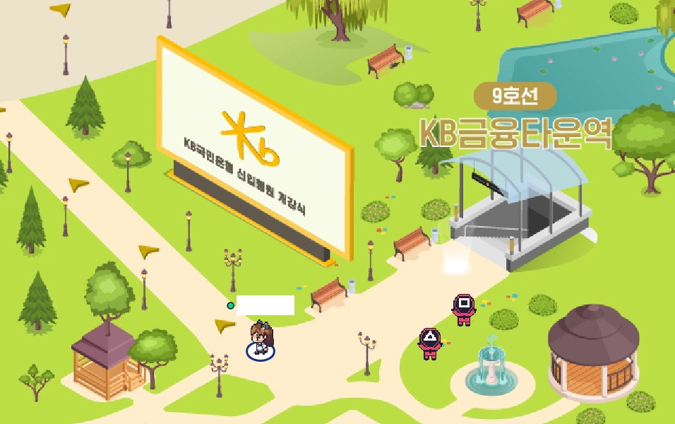 시작 지점은 '9호선 KB금융타운역'(9호선 샛강역을 모티브로 제작한 것처럼 보인다)이다. 화살표를 따라 길을 나서면…….