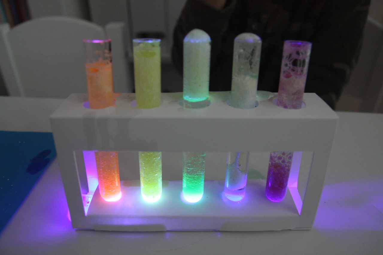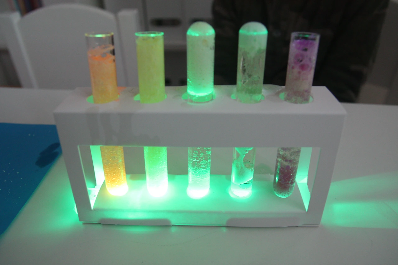 작은 크기의 점멸 LED 스위치를 시험관 아래에 놓습니다.