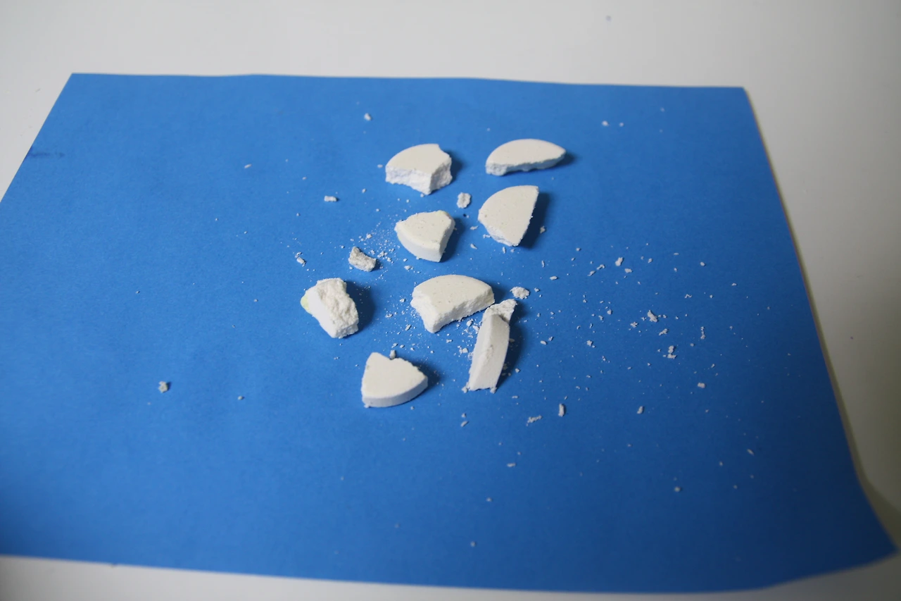 발포성 정제는 물과 격렬하게 반응하여 이산화탄소 거품을 내뿜는데