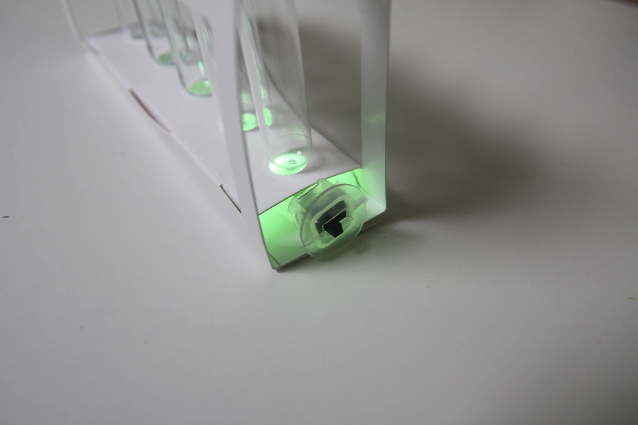 작은 크기의 점멸 LED 스위치를 시험관 아래에 놓아줍니다.