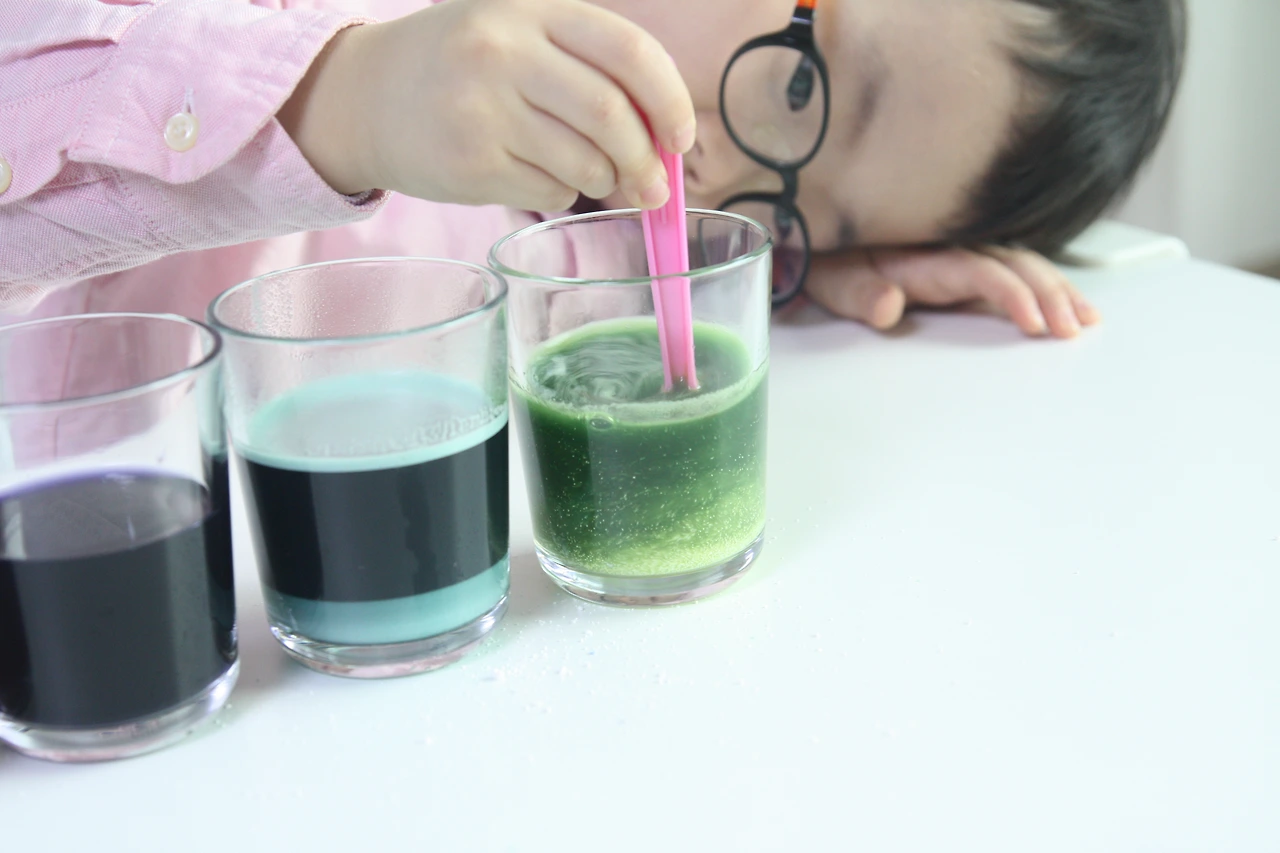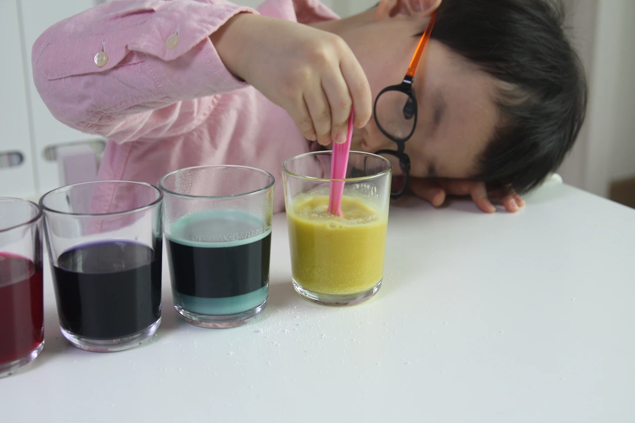 레몬물과 베이킹소다물을 섞으면 색깔이 어떻게 변할까요~~~? ^^