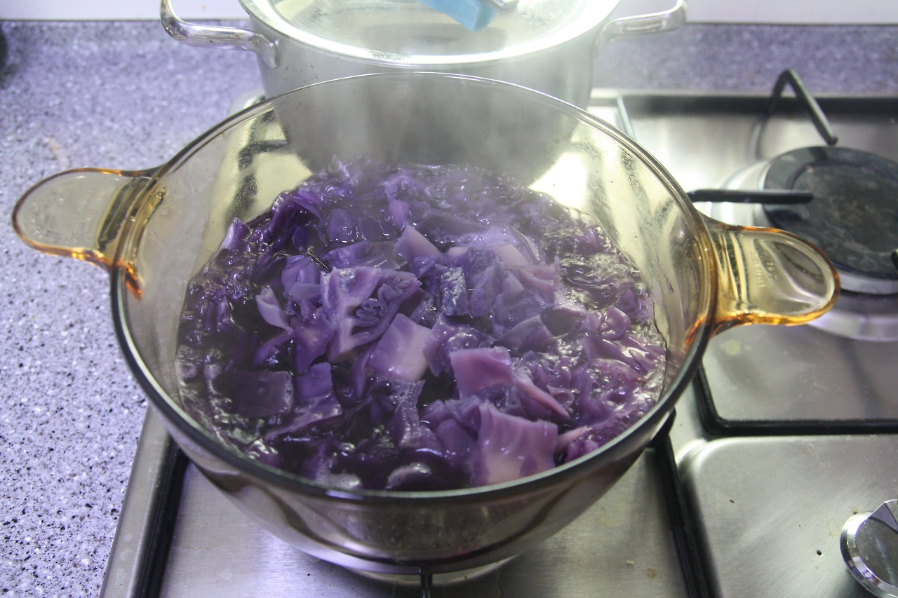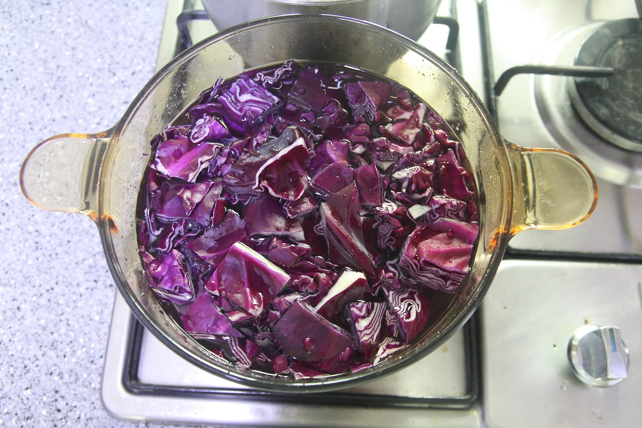 보라색 양배추 물이 우러나오면