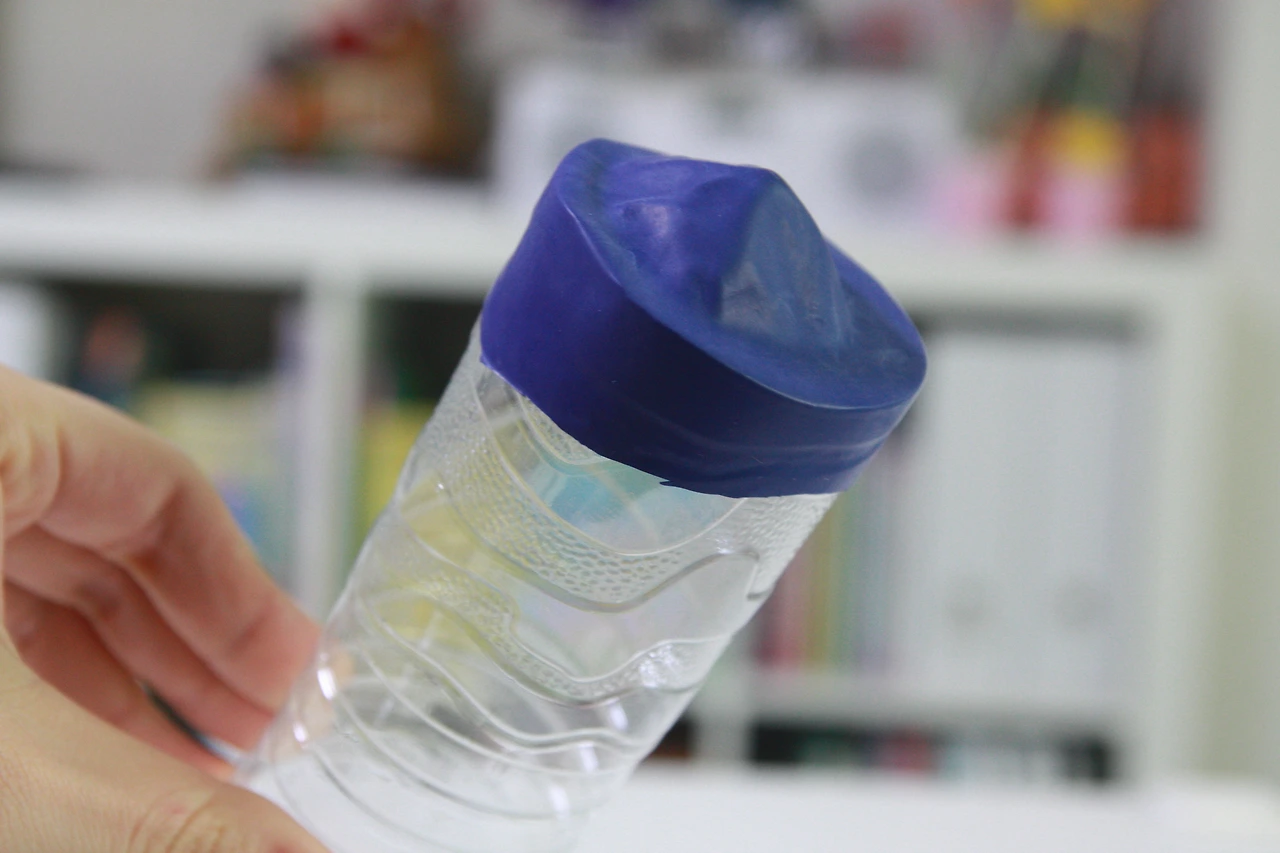바닥을 잘라준 페트병에 풍선을 씌워줍니다.