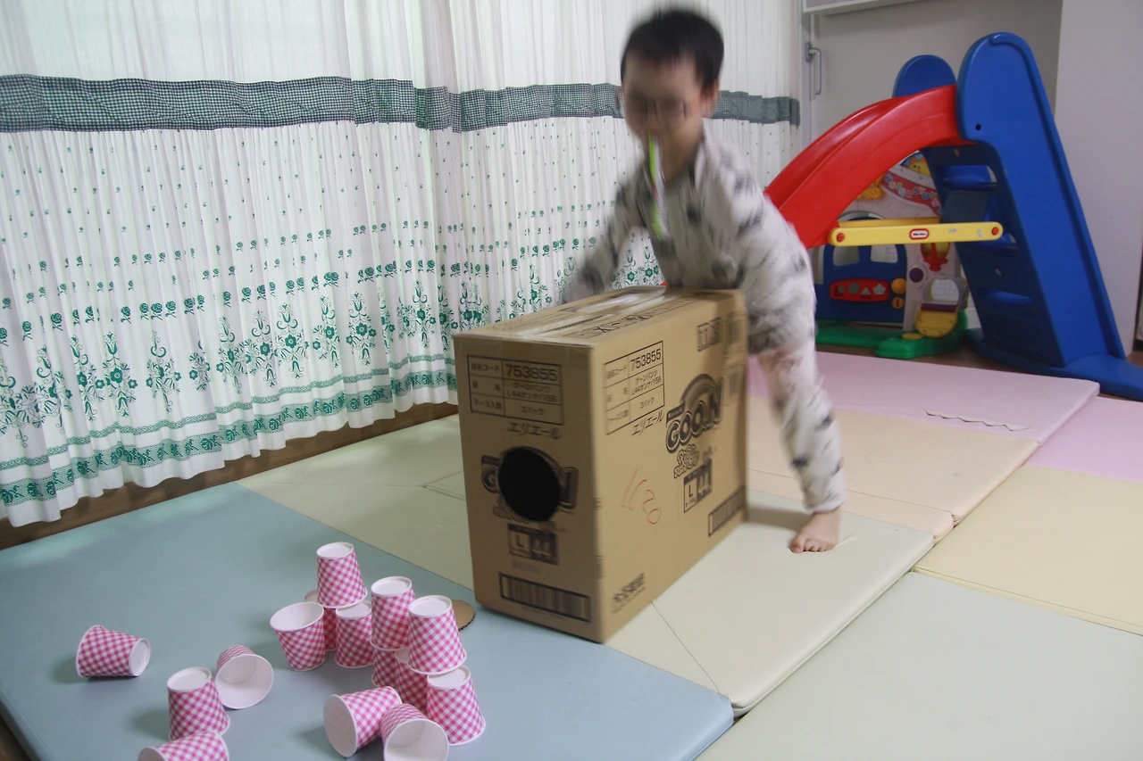 그 앞에 종이 상자로 만든 대왕 공기 대포를 놓고 상자의 옆면을 강하게 쳐 주세요~~