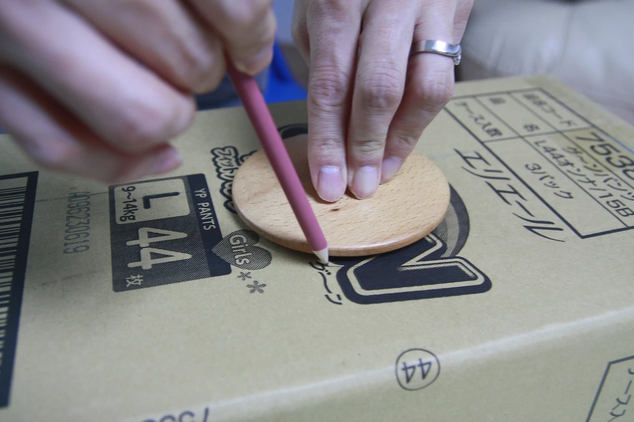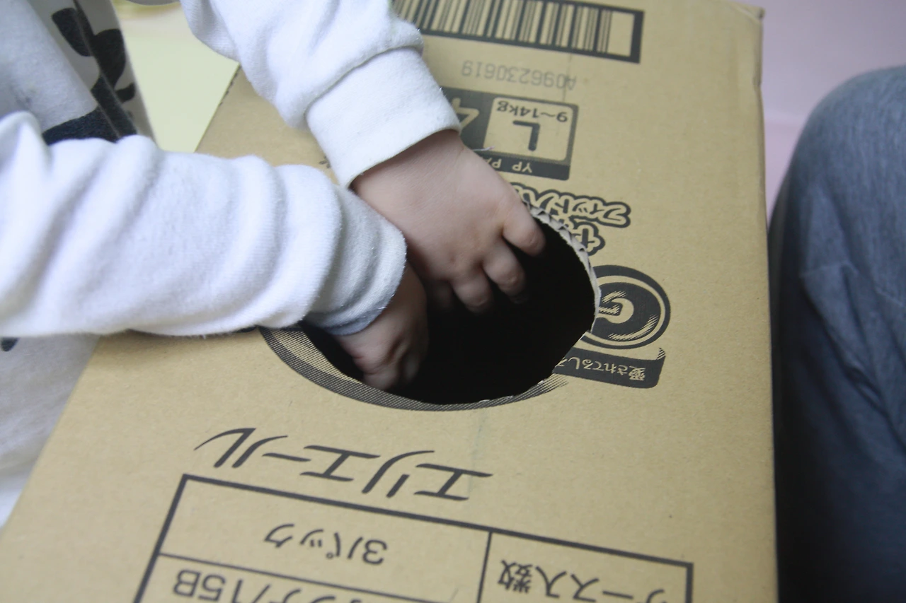 종이 상자의 좁은 부분에 공기가 나오는 구멍을 뚫어줍니다.