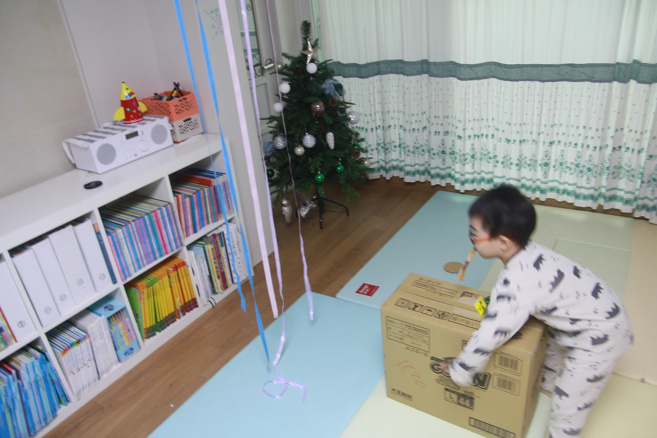 종이 상자로 만든 공기 대포 하나만으로도 아이들은 너무 재미있게 놀았어요~~