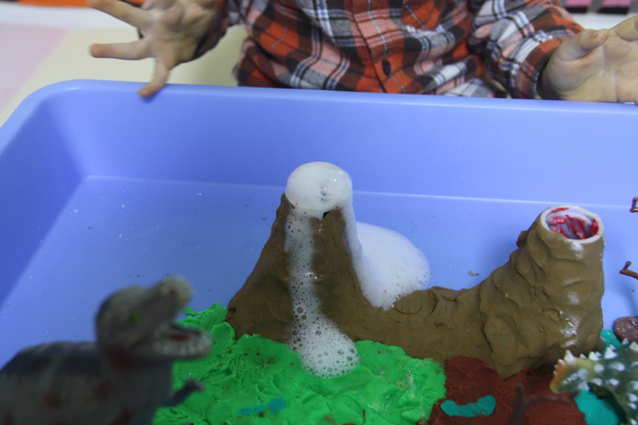 "으악~ 화산이 폭발했어! 도망가!"라며 인형놀이도 하더라고요~