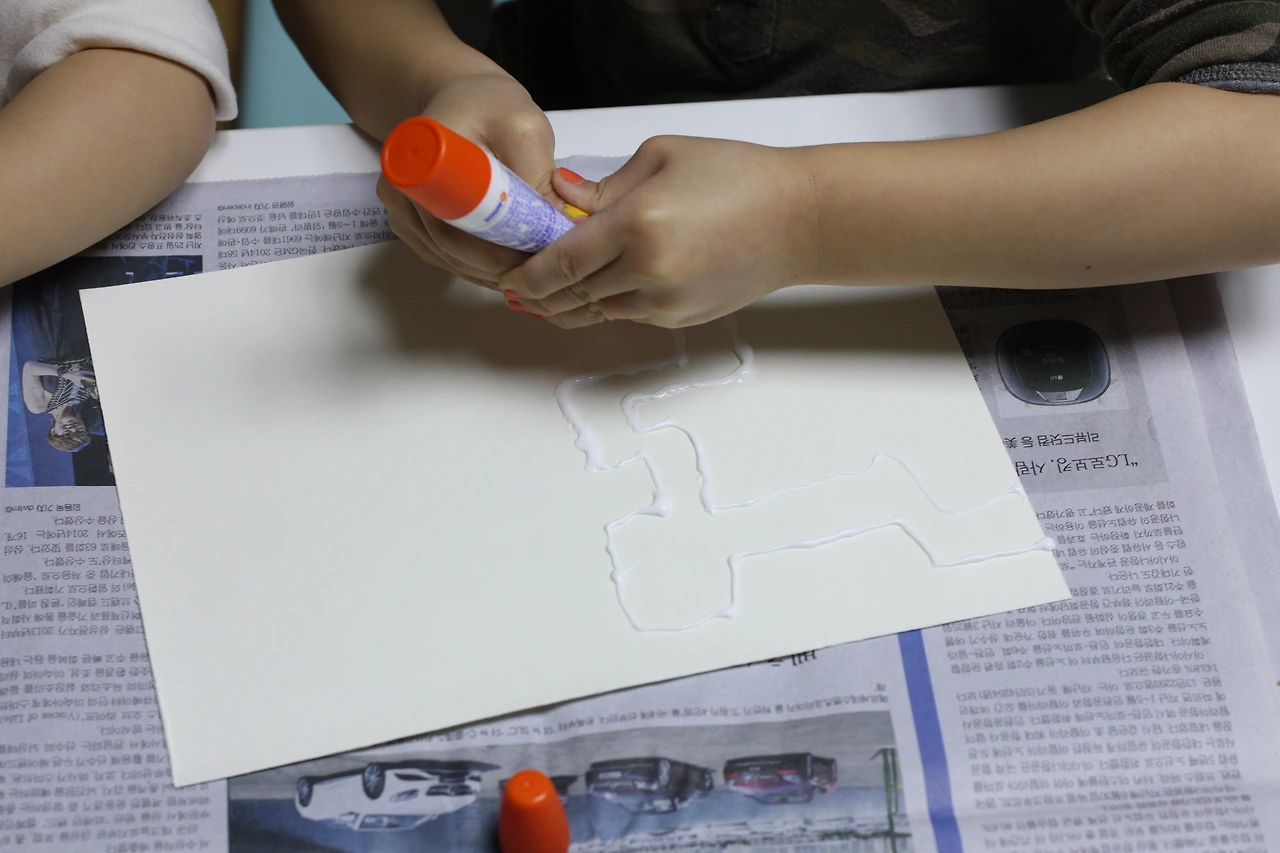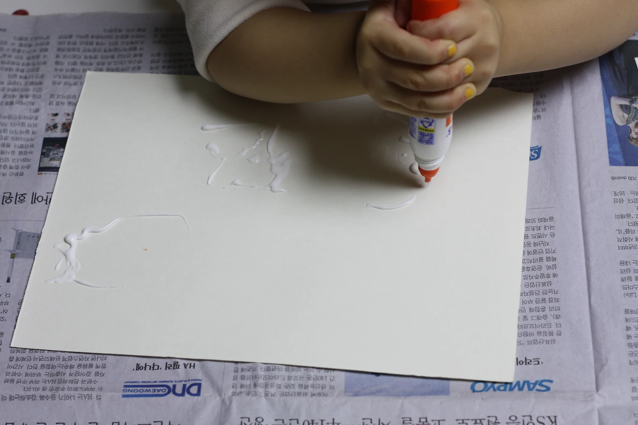 도화지에 목공풀로 자유롭게 그림을 그려줍니다.